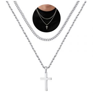 Yooblue Cross Necklace for Men – Stainless Steel Cross Chain Necklace for Men, Mens Jewelry Cross Pendant Cross Necklace, Layered Silver Chain for Men