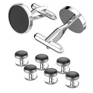 FIBO STEEL 2 Pairs Stainless Steel Black/Silver Cufflinks for Men Tuxedo Cufflinks and Studs for Wedding, Business, Formal Events Classic Custom Cuff Links for Men
