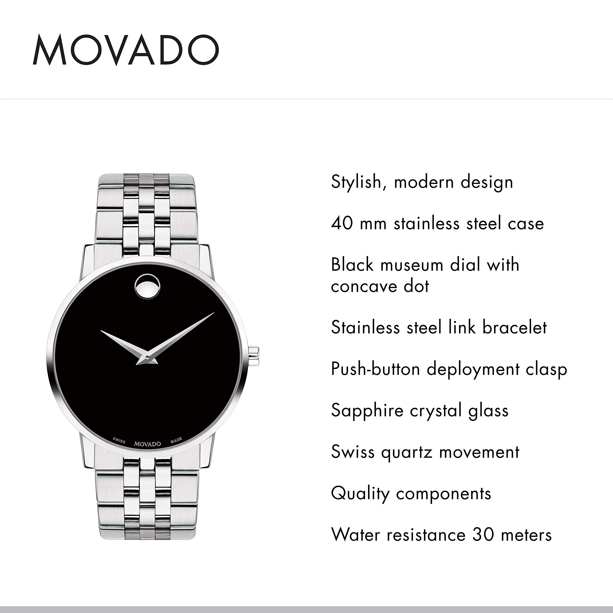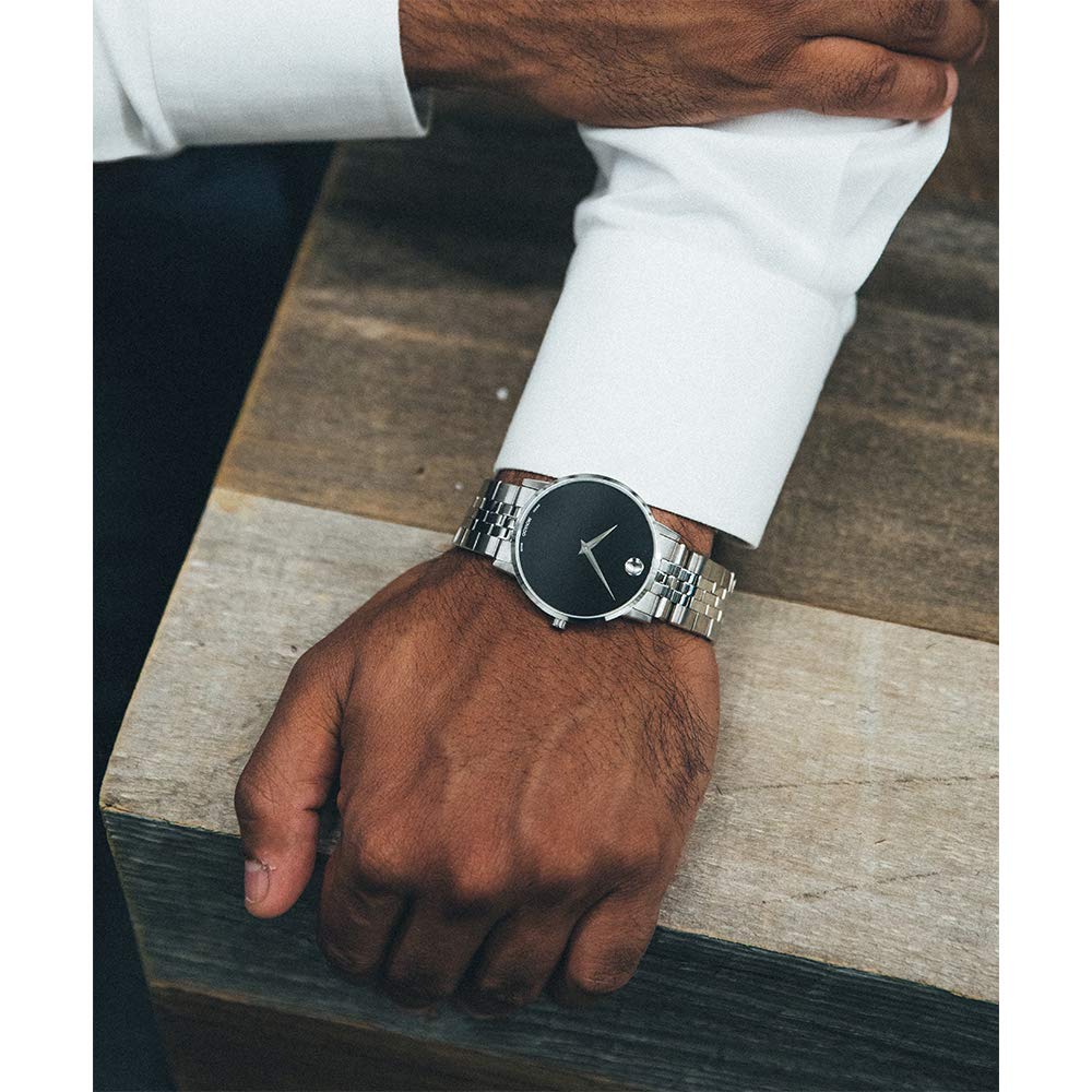Movado Museum Classic Men’s Swiss Quartz Watch – Stainless Steel, Link Bracelet – Water Resistance 3ATM/30 Meters – Classic Luxury Timepiece – Gift for Him – 40mm